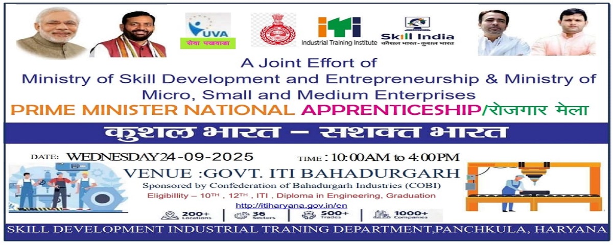 The Department of Skill Development and Industrial Training, Haryana is imparting skill-based training to the unemployed youth of the state through the network of 172 Govt. ITIs (139 (Co-Ed.) GITIs and 33 GITIs for Women) and 246 Private ITIs under Craftsman Training Scheme.